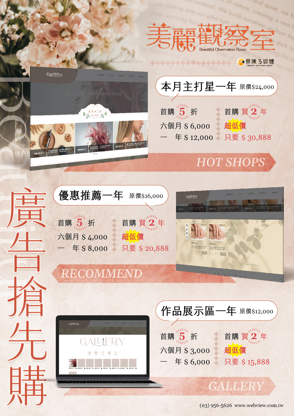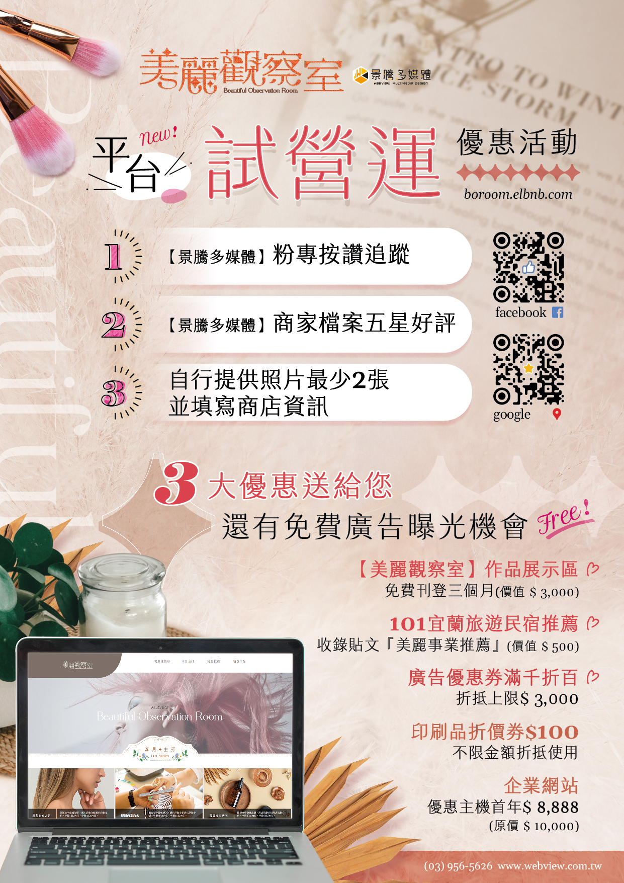 1.【美麗觀察室】作品展示區 免費刊登三個月(價值3,000元)